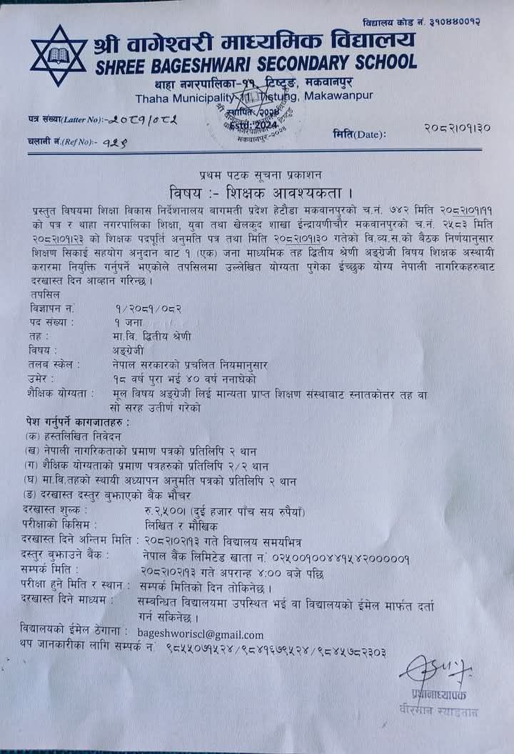 शिक्षक आवश्यकता । खास कुरा संवाददाता जेष्ठ ६, २०८२ 145 0 लोकप्रिय समाचार संकलनमा रोक लगाएपछि प्रजिअको कार्यकक्षभित्रै प्रतिवाद असार ६, २०८२ स्वास्थ्य क्लिनिक सञ्चालक पक्राउ भदौ २१, २०८० महालेखा प्रतिवेदनः मकवानपुरका पालिकामध्ये सबैभन्दा कम बेरुजु बकैया र सबैभन्दा बढी बेरुजु थाहा नगरपालिकाको बैशाख ३१, २०८२ मकवानपुरको कैलाशबाट एक हजार किलोभन्दा बढी गाँजा सहित चार जना पक्राउ असार १७, २०८२ अवैध लागूऔषध सहित २० जना पक्राउ असार २६, २०८२ Previous articleवञ्जर जग्गामा बोरिङ सिँचाईले ल्यायो खुशीयालीNext articleकर्मचारी आवश्यकता । ताजा समाचार चेपाङ बाहुल्य वडालाई समेटेर झोरालाङ गाउँपालिका बनाउन प्रस्ताव सिस्नुपानीले लुइँटेल र न्यौपानेलाई सम्मान गर्दै फेक अडियो बनाएको आरोपमा धनुषाका सई जबरा निलम्बनमा Load more Related Articles खास कुरा संवाददाता - बैशाख ८, २०८३चेपाङ बाहुल्य वडालाई समेटेर झोरालाङ गाउँपालिका बनाउन प्रस्ताव खास कुरा संवाददाता - बैशाख ८, २०८३सिस्नुपानीले लुइँटेल र न्यौपानेलाई सम्मान गर्दै खास कुरा संवाददाता - बैशाख ८, २०८३फेक अडियो बनाएको आरोपमा धनुषाका सई जबरा निलम्बनमा Load more