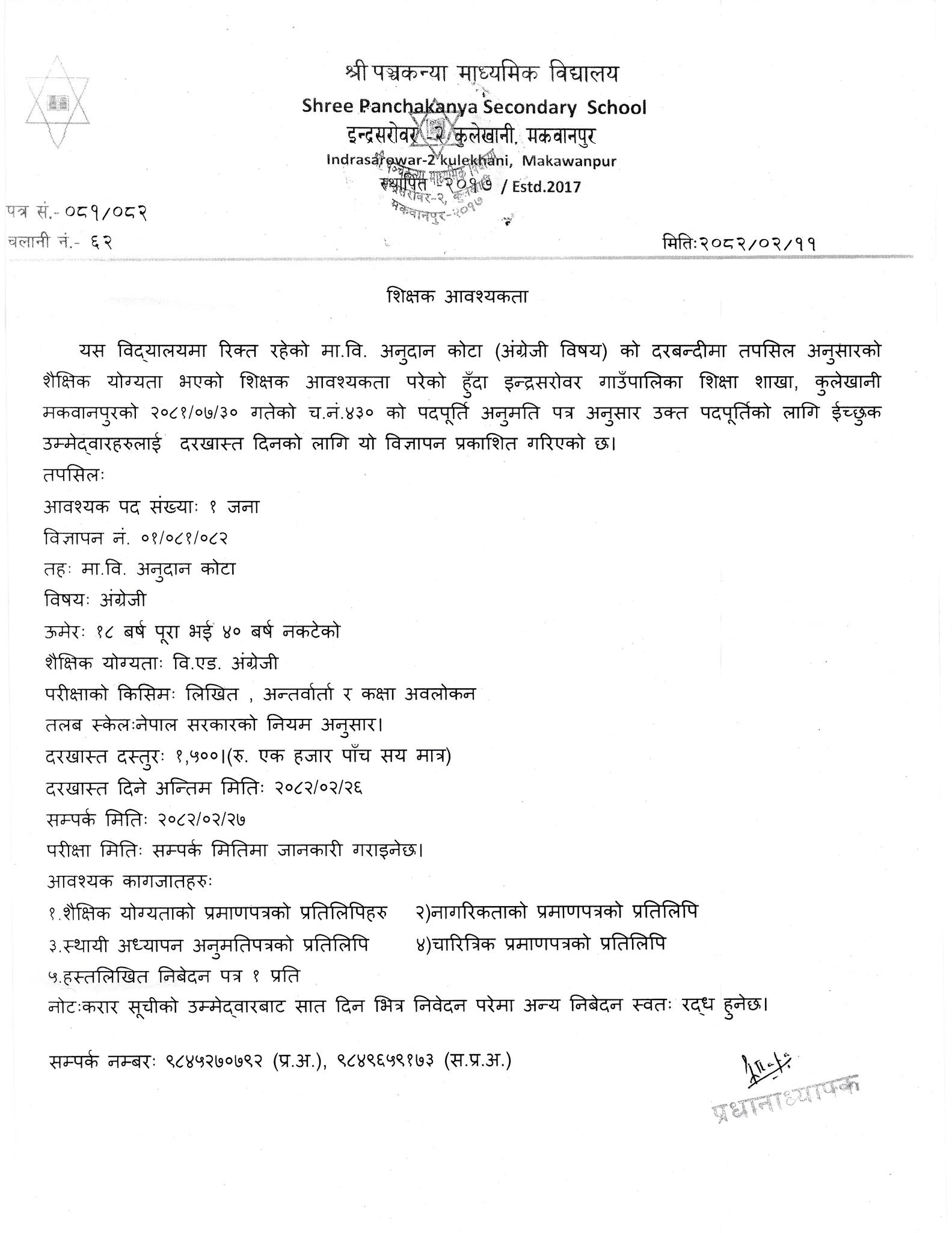 शिक्षक आवश्यकता । खास कुरा संवाददाता जेष्ठ १३, २०८२ 207 0 लोकप्रिय समाचार संकलनमा रोक लगाएपछि प्रजिअको कार्यकक्षभित्रै प्रतिवाद असार ६, २०८२ स्वास्थ्य क्लिनिक सञ्चालक पक्राउ भदौ २१, २०८० महालेखा प्रतिवेदनः मकवानपुरका पालिकामध्ये सबैभन्दा कम बेरुजु बकैया र सबैभन्दा बढी बेरुजु थाहा नगरपालिकाको बैशाख ३१, २०८२ मकवानपुरको कैलाशबाट एक हजार किलोभन्दा बढी गाँजा सहित चार जना पक्राउ असार १७, २०८२ अवैध लागूऔषध सहित २० जना पक्राउ असार २६, २०८२ Previous articleप्रदेश सरकारको आगामी आवको नीति तथा कार्यक्रम स्वीकृतNext articleबागमती प्रदेशको नीति तथा कार्यक्रमको तयारी पूरा ताजा समाचार काठमाडौँको सुकुम्बासी बस्तीमा डोजर चलाइयो भूकम्पीय जोखिम न्यूनीकरणका प्रभावकारी उपाय अपनाउन जरुरी छः राष्ट्रपति कांग्रेसद्वारा सुकुम्वासी बस्तीका समस्या समाधान गर्न सुझाव Load more Related Articles खास कुरा संवाददाता - बैशाख १२, २०८३काठमाडौँको सुकुम्बासी बस्तीमा डोजर चलाइयो खास कुरा संवाददाता - बैशाख १२, २०८३भूकम्पीय जोखिम न्यूनीकरणका प्रभावकारी उपाय अपनाउन जरुरी छः राष्ट्रपति खास कुरा संवाददाता - बैशाख १२, २०८३कांग्रेसद्वारा सुकुम्वासी बस्तीका समस्या समाधान गर्न सुझाव Load more