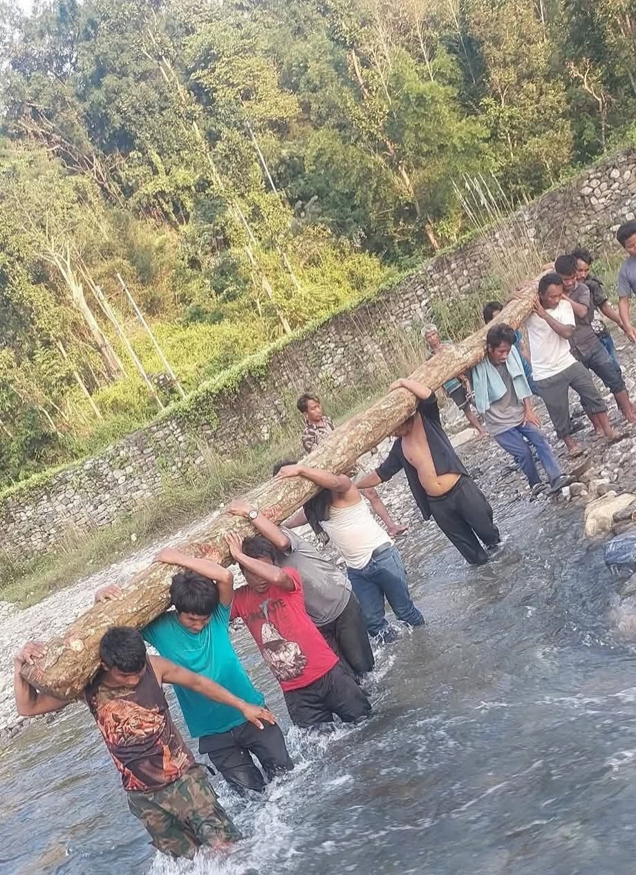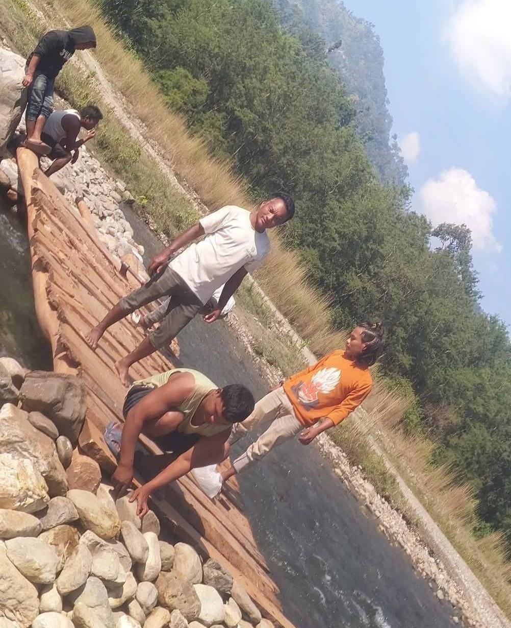 संविधान सभा सदस्य गोविन्दराम चेपाङले वर्षायाममा आवत जावतमा समस्या खेप्दै आएका स्थानीयले श्रमदान गरेर अस्थायी रुपमा काठेपुल बनाएको जानकारी दिनुभयो ।