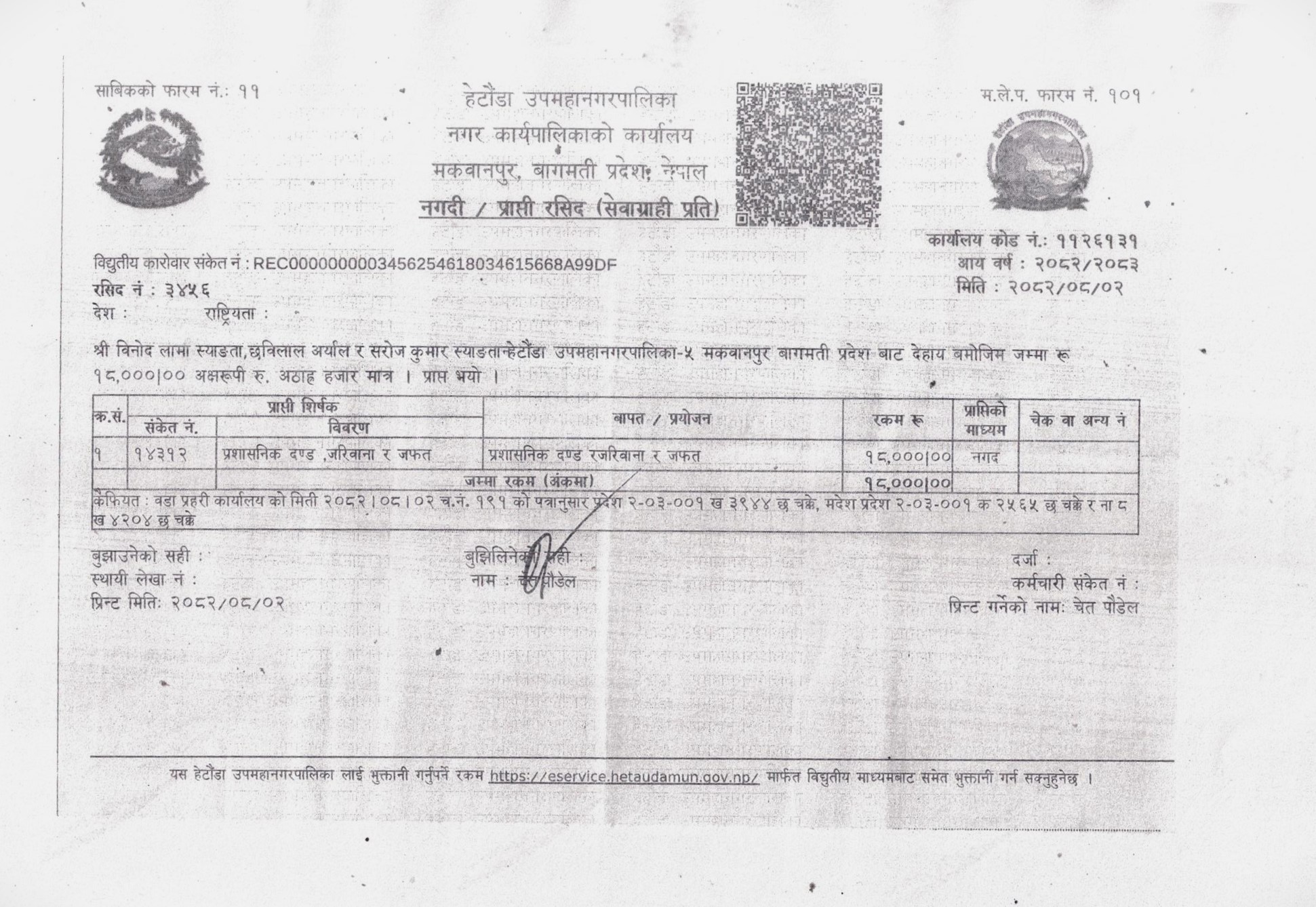नियन्त्रणमा लिइएका टिप्परमा प्रदेश २–०३–००१ ख ३९४४, मदेस प्रदेश २–०३–००१ क २५६५ र ना. ८ ख. ४२०४ नं.को रहेको छ । तीन वटै टिप्परलाई नियन्त्रणमा लिई आवश्यक कारबाहीको लागी हेटौँडा उप–महानगरपालिकाको कार्यालयमा पठाई १८ हजार रुपियाँ जरिवाना गरिएको जिल्ला प्रहरी कार्यालय मकवानपुरले जनाएको छ ।