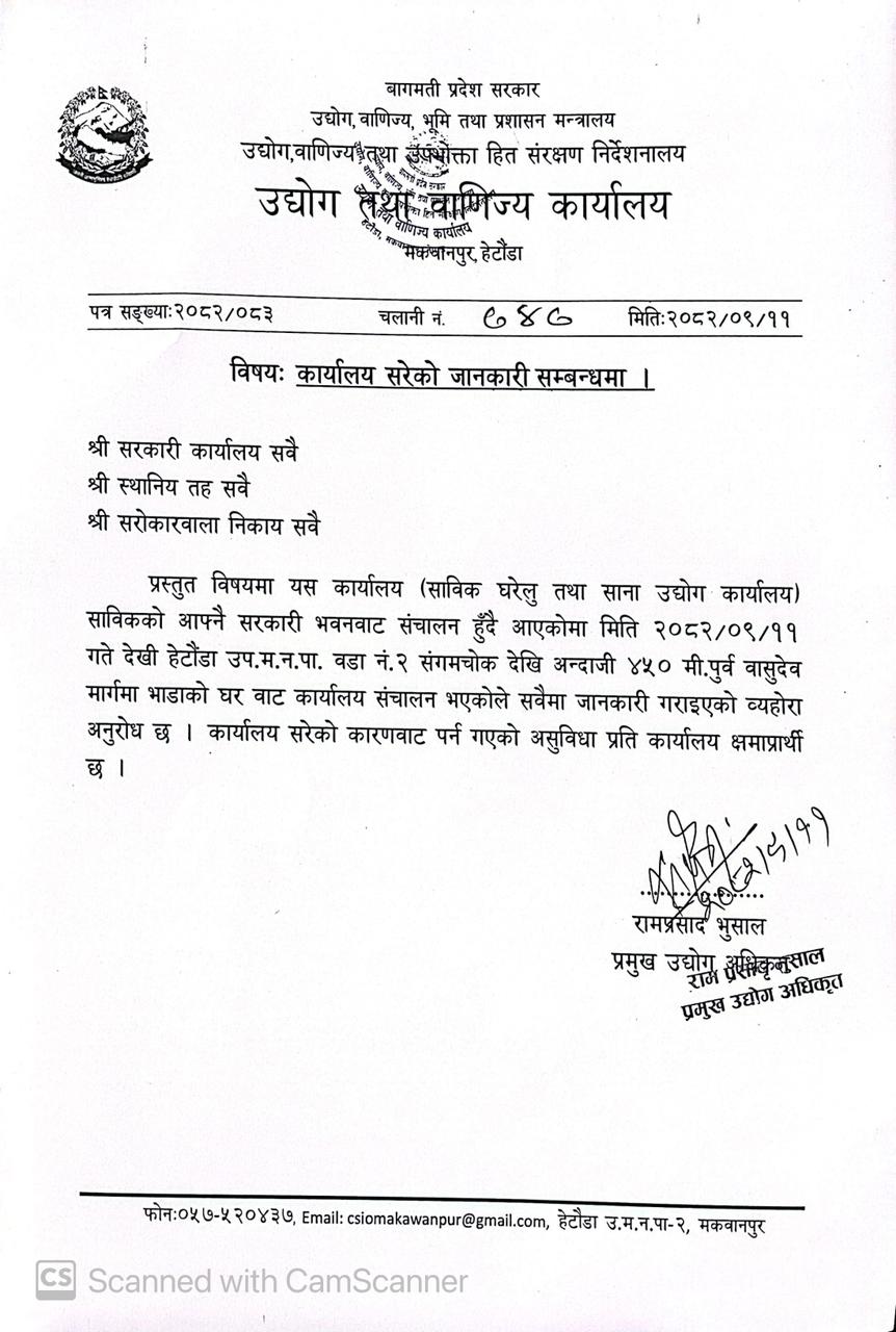 कार्यालय सरेको सूचना । खास कुरा संवाददाता पुस ११, २०८२ 5 0 लोकप्रिय समाचार संकलनमा रोक लगाएपछि प्रजिअको कार्यकक्षभित्रै प्रतिवाद असार ६, २०८२ महालेखा प्रतिवेदनः मकवानपुरका पालिकामध्ये सबैभन्दा कम बेरुजु बकैया र सबैभन्दा बढी बेरुजु थाहा नगरपालिकाको बैशाख ३१, २०८२ मकवानपुरको कैलाशबाट एक हजार किलोभन्दा बढी गाँजा सहित चार जना पक्राउ असार १७, २०८२ अवैध लागूऔषध सहित २० जना पक्राउ असार २६, २०८२ वडाध्यक्ष कोइरालाको प्रश्नः सिडियो कार्यालयमा कुर्सी राखेर काम गर्नुपर्ने अवस्था आएको हो ? असार ६, २०८२ Previous articleकांग्रेसद्वारा राष्ट्रियसभाको अधिवेशन मागNext articleकांग्रेसमा नियमित महाधिवेशन नभए विशेष महाधिवेशन गर्न माग ताजा समाचार आगो, हिटर बाल्दा वा गिजर प्रयोग गर्दा सावधानी अपनाउन आग्रह निर्वाचनको विकल्प निर्वाचनबाहेक अरु केही हुन सक्दैन: कार्यवाहक प्रमुख आयुक्त भण्डारी कांग्रेसमा नियमित महाधिवेशन नभए विशेष महाधिवेशन गर्न माग Load more Related Articles खास कुरा संवाददाता - पुस ११, २०८२आगो, हिटर बाल्दा वा गिजर प्रयोग गर्दा सावधानी अपनाउन आग्रह खास कुरा संवाददाता - पुस ११, २०८२निर्वाचनको विकल्प निर्वाचनबाहेक अरु केही हुन सक्दैन: कार्यवाहक प्रमुख आयुक्त भण्डारी खास कुरा संवाददाता - पुस ११, २०८२कांग्रेसमा नियमित महाधिवेशन नभए विशेष महाधिवेशन गर्न माग Load more